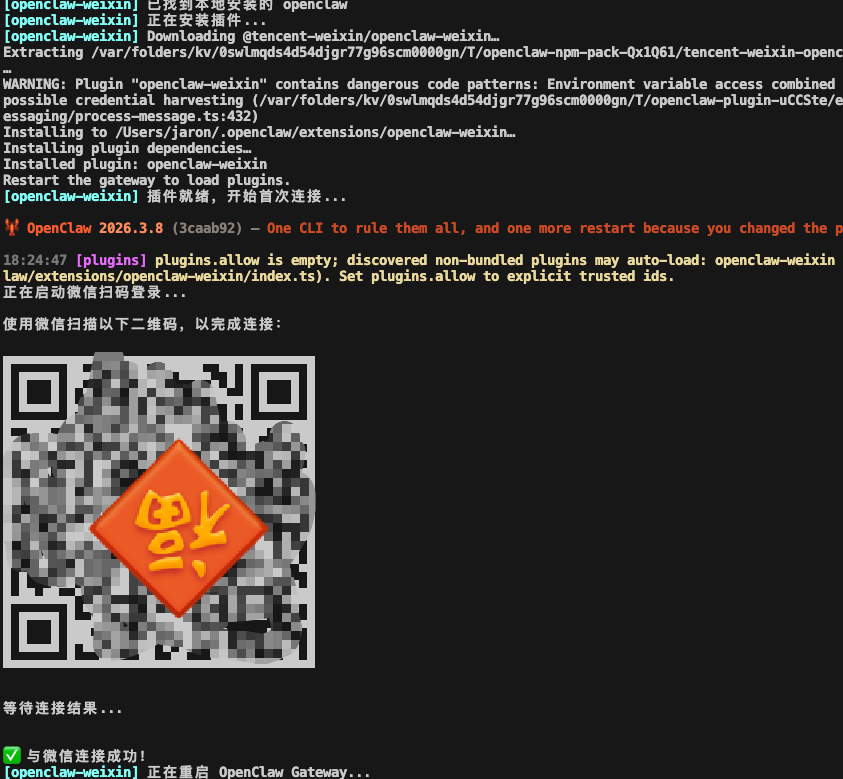 npx -y @tencent-weixin/openclaw-weixin-cli@latest install扫码完成绑定